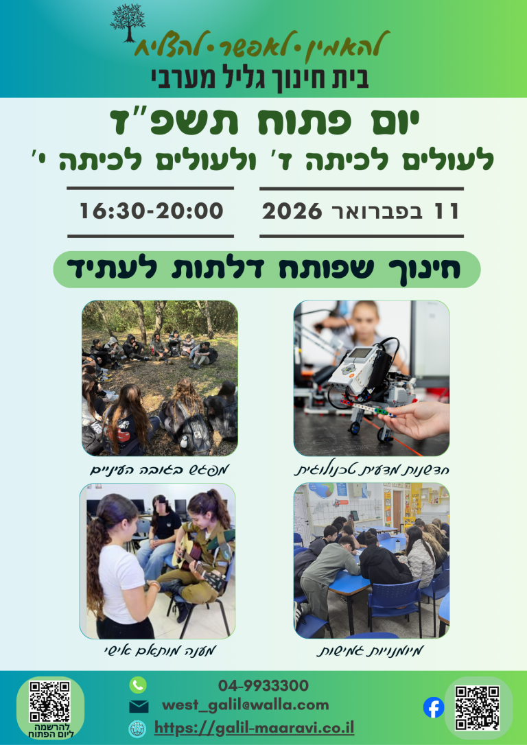 יום פתוח בבית חינוך גליל מערבי – חוויה מעשירה ומרגשת! אתמול אירחנו בשמחה את תלמידי כיתות ו’ והוריהם, שבאו להכיר...